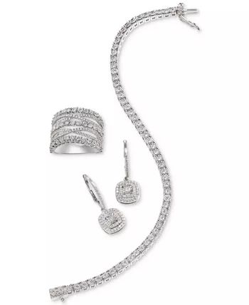 Tremendous sparkle radiates from these stunning round-shape diamond halo drop earrings exquisitely fashioned in luxurious sterling silver.
