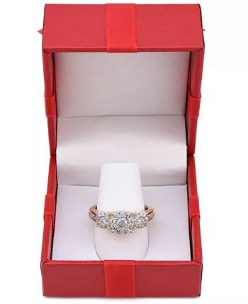 Make her wishes come true with this romantic round-shape three stone halo diamond engagement ring (3/4 ct. t.w.) beautifully designed in 14k gold, white gold or rose gold.