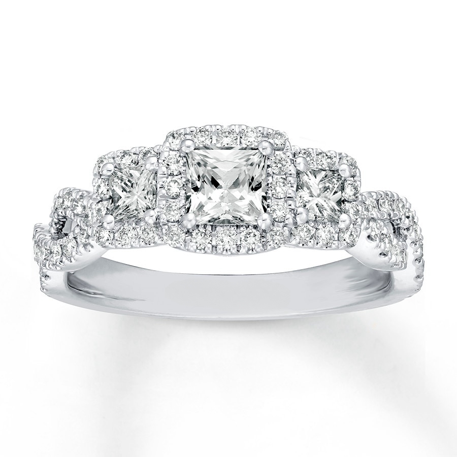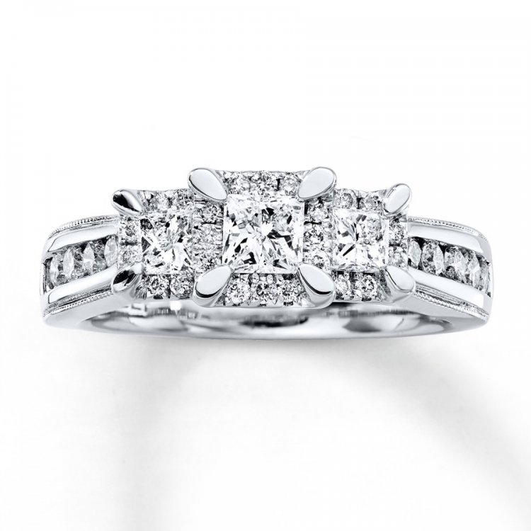3-Stone Diamond Ring 1-1/2 ct tw Princess/Round 14K White Gold