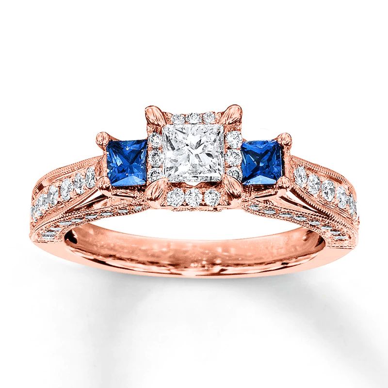 Diamond/Sapphire Engagement Ring 1 cttw Princess/Round 14K Gold