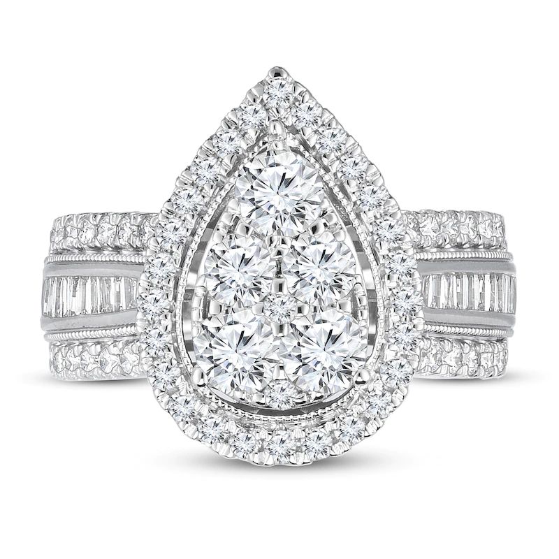 Pear-Shaped Diamond Engagement Ring 2 cts tw Round/Baguette 10K Whte Gold
