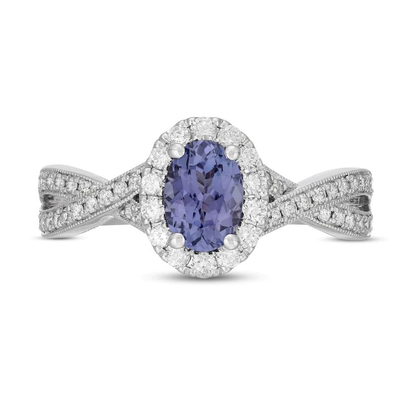 Tanzanite & Diamond Engagement Ring 5/8 ct tw Round-cut 14K White Gold