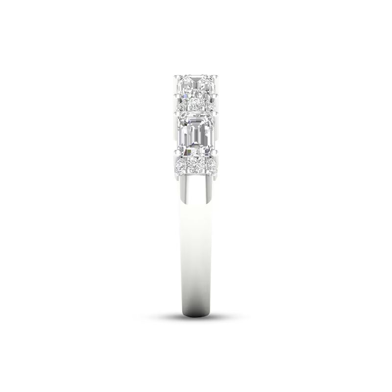Diamond Anniversary Ring 2 ct tw Round & Baguette-cut 14K White Gold
