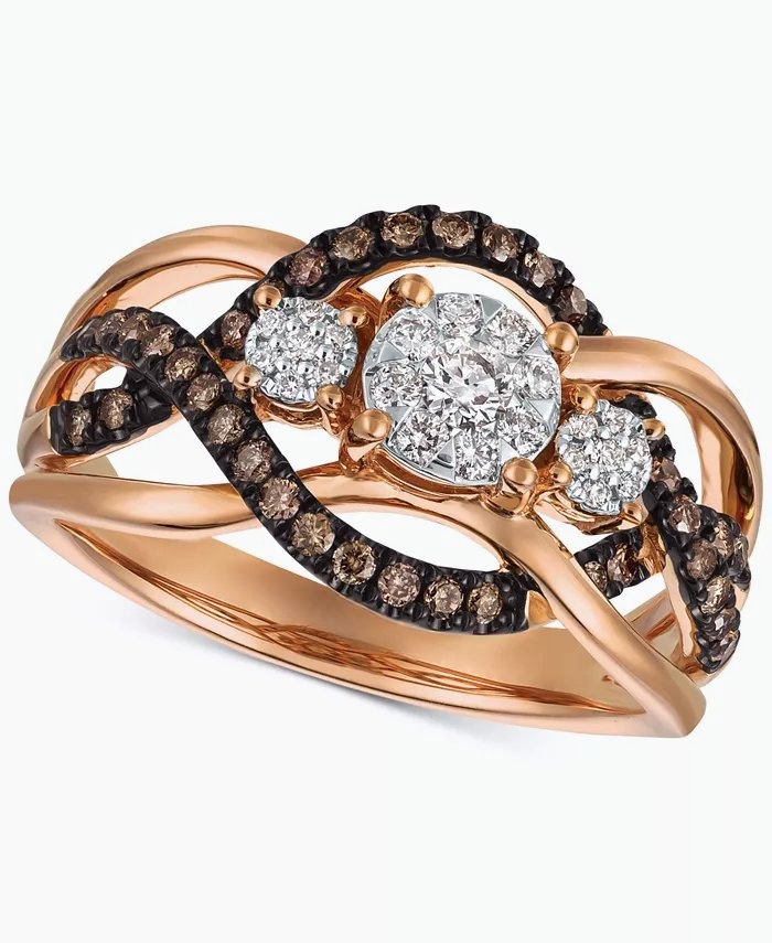 14K Strawberry Gold Ring with Nude Diamonds 1 1/3 cts., Chocolate Diamonds 5/8 cts.