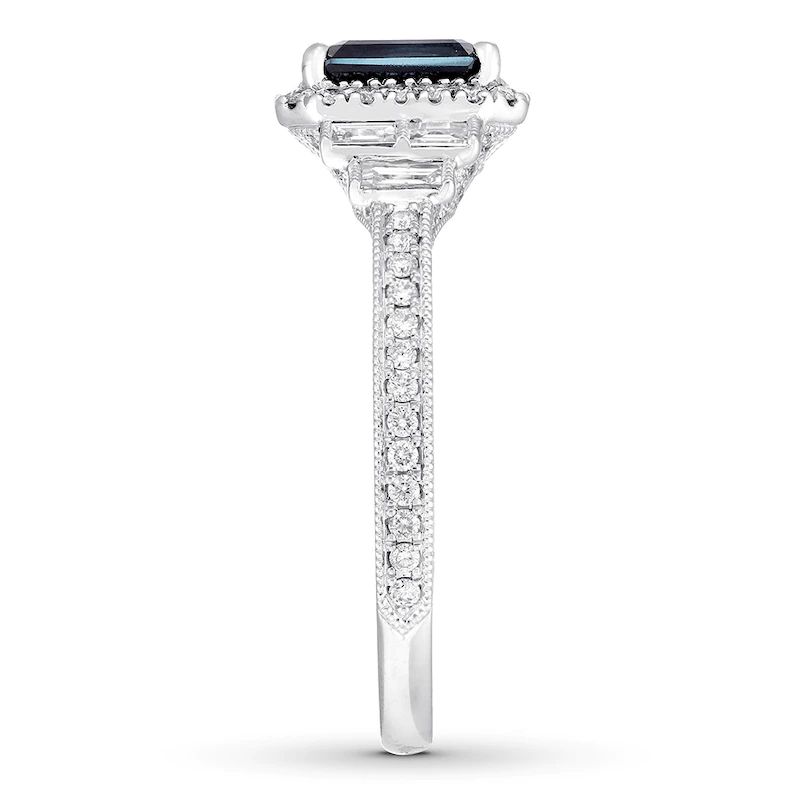 Natural Sapphire Enhancer Ring 1/5 ct tw Diamonds 14K White Gold